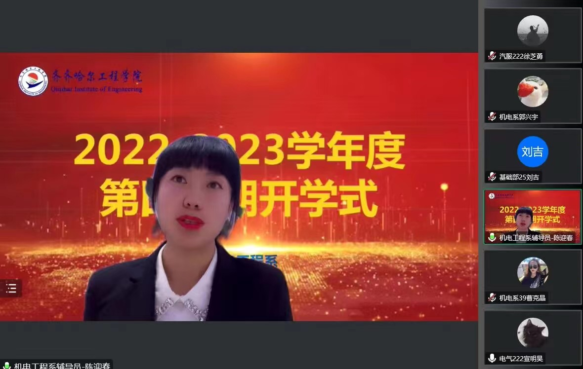 1月6日晚19时,机电工程系进行第四学期线上开学式。系领导、专业长、生涯导师、党员学长、小组组长、辅导员共300余人参加,辅导员陈迎春主持。
