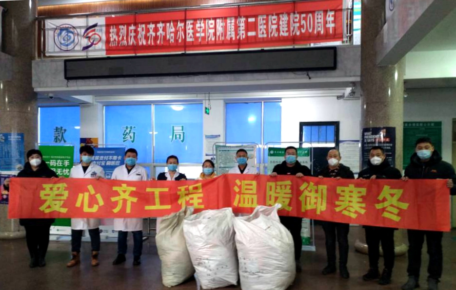 1月17日上午,在新春佳节即将来临之际,校工会副主席王丽萍及校工会委员、部分基层工会主席一行八人来到齐齐哈尔医学院附属第四医院,向患者捐赠毛衣、羽绒服、棉裤、牛仔裤300余件。此项活动在学校已形成了传统。