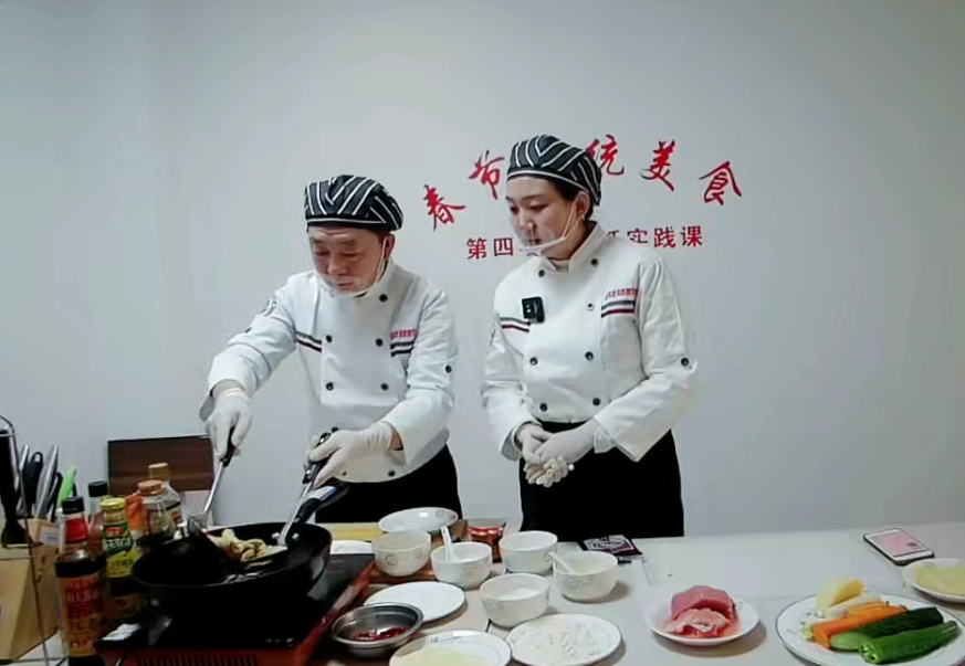 2月4日(立春),我校生活实践类通识教育选修课——《春节传统美食》在百草公寓居家101室继续面向五湖四海的学生线上开课。本期美食课共有618名同学参加,校总务处食品科现场两人授课,三人助教。
