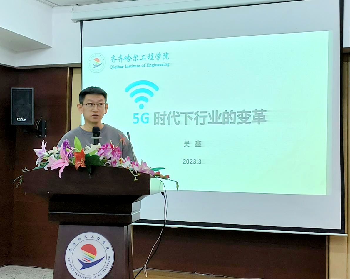 讲座开始前,团委教师王睿介绍了本次专题讲座主讲人吴鑫先生的情况,他曾任戴尔(中国)有限公司黑龙江区商用渠道总经理,浪潮集团齐齐哈尔分公司总经理,现任徐工集团徐工汉云科技黑龙江总经理。