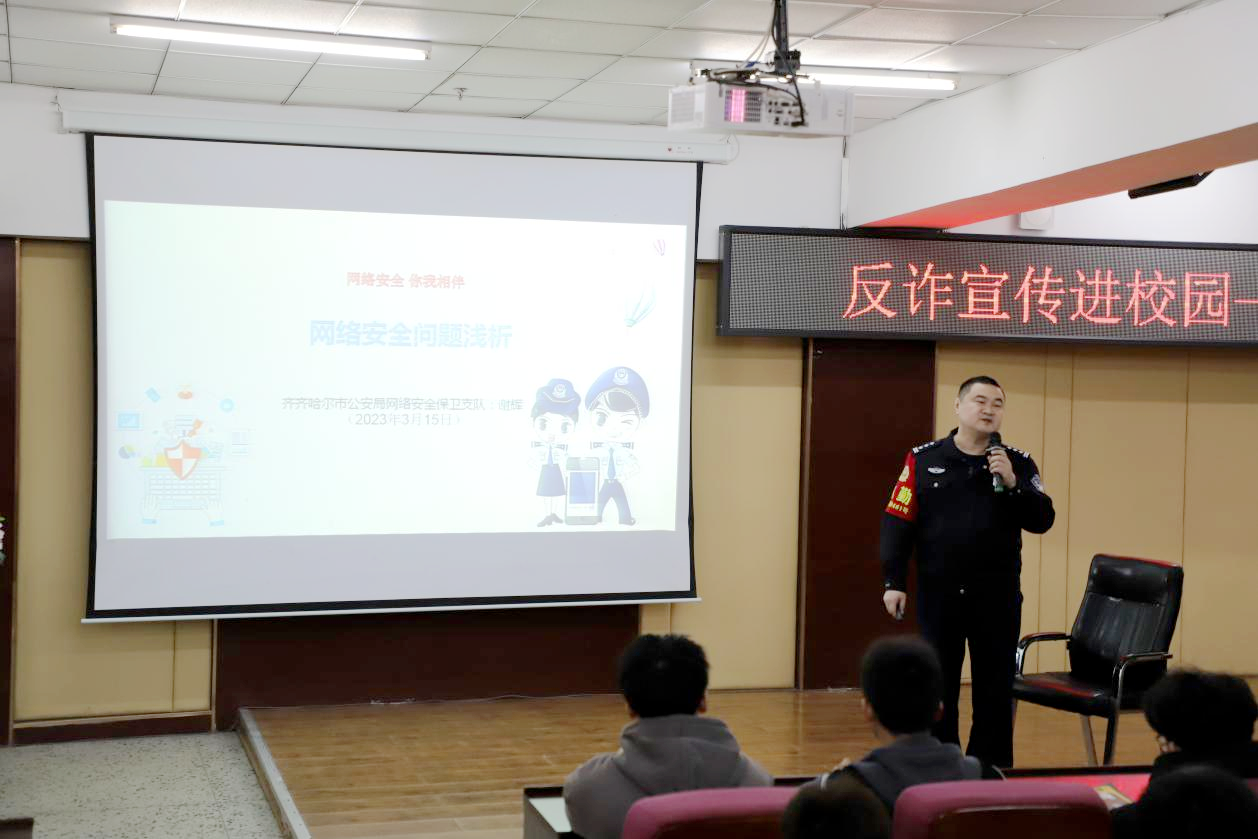 谢警官从我国互联网发展现状,网络诈骗、网络赌博、网络贷款及典型案例,保密安全教育等五个方面对学生进行宣讲,并通过现场提问解答的方式,向学生讲解“校园贷”和电信诈骗的规律特点、作案手段,预防方法以及补救措施。