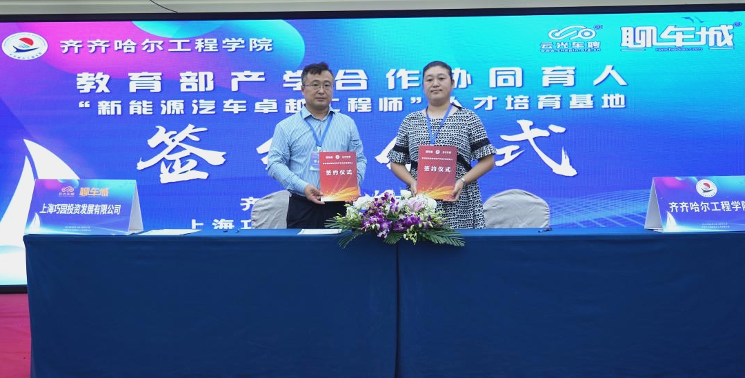 专题报告会后,郭明敬与上海巧园投资发展有限公司总裁李兴签署了《教育部高等教育司产学合作协同育人2023年(5月批次)项目合作协议书》,校企双方均以《教育部产学合作协同育人项目管理办法》为指引,联合建设“新能源汽车卓越工程师”人才培育基地,通过产业入校,构建校企协同育人新机制,共同谱写汽车产教融合发展新篇章。