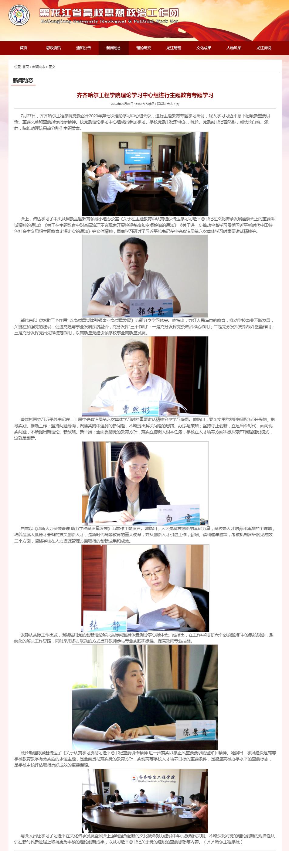 黑龙江省高校思想政治工作网:齐齐哈尔工程学院理论学习中心组进行主题教育专题学习
