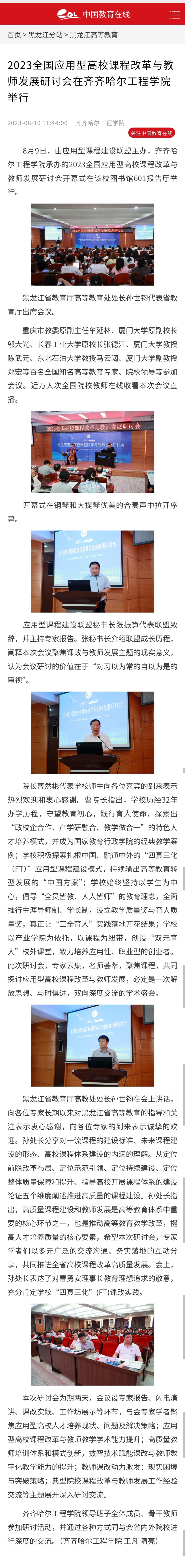 中国教育在线:2023全国应用型高校课程改革与教师发展研讨会在齐齐哈尔工程学院举行