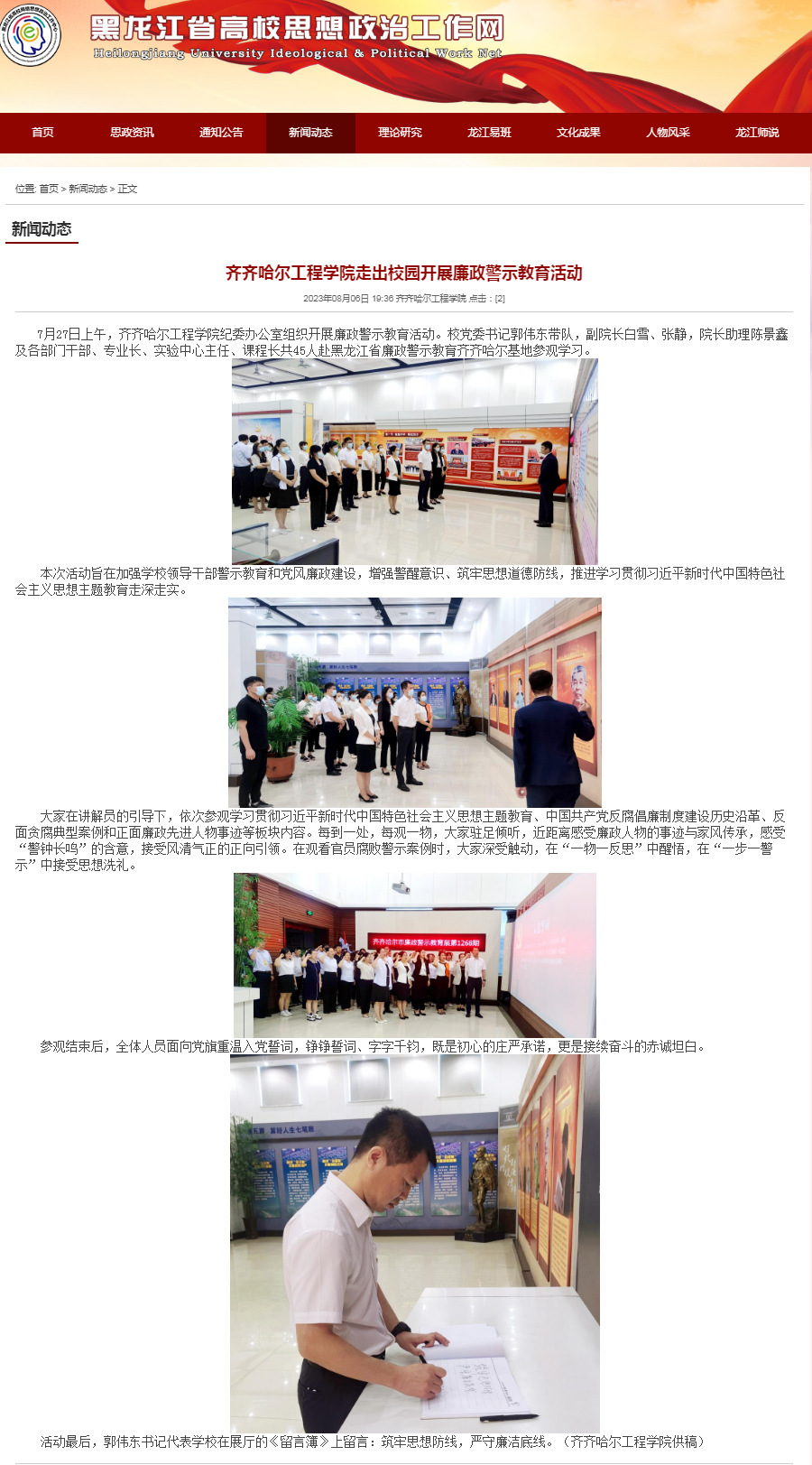 黑龙江省高校思想政治工作网:齐齐哈尔工程学院走出校园开展廉政警示教育活动