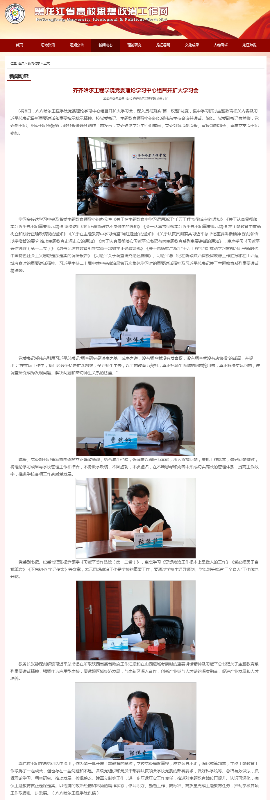 黑龙江省高校思想政治工作网:齐齐哈尔工程学院党委理论学习中心组召开扩大学习会