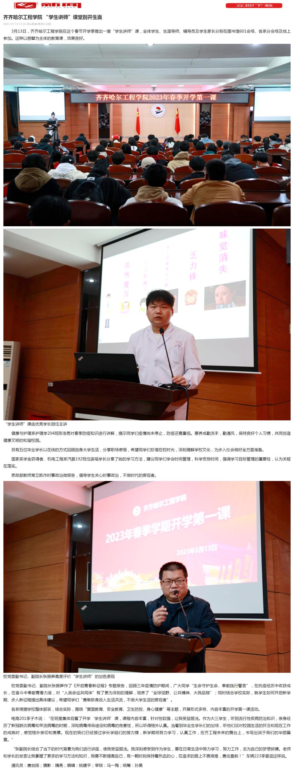 龙头新闻:齐齐哈尔工程学院 “学生讲师”课堂别开生面