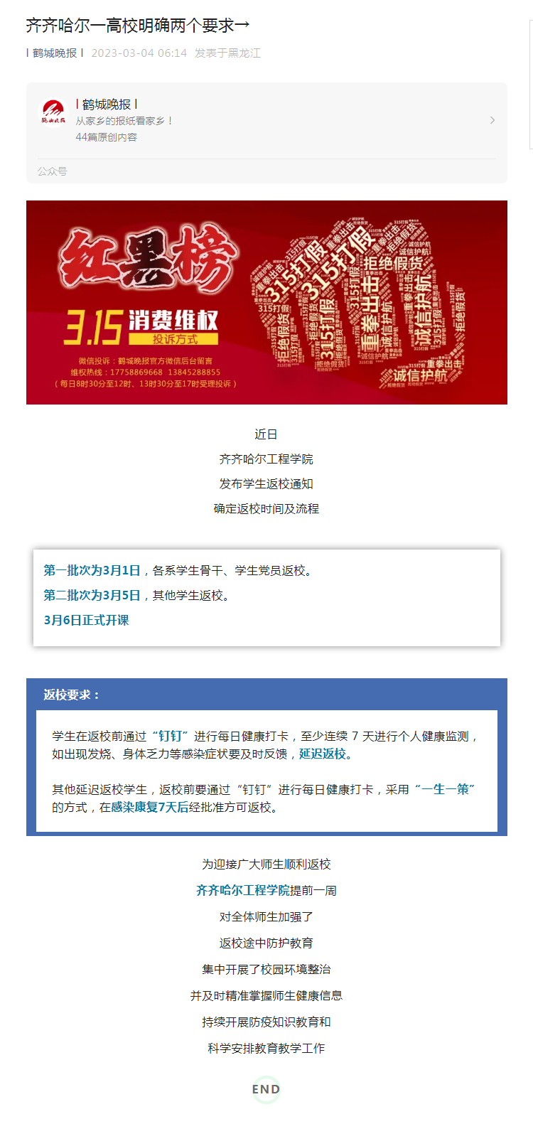 鹤城晚报公众号:齐齐哈尔一高校明确两个要求