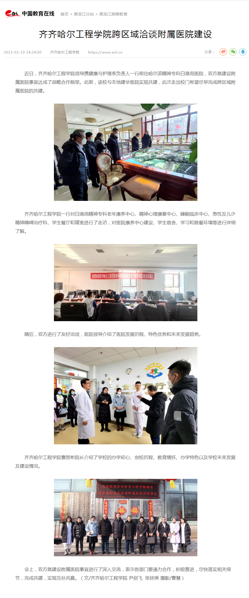 中国教育在线:齐齐哈尔工程学院跨区域洽谈附属医院建设