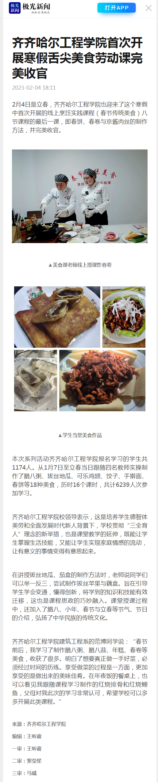 极光新闻:齐齐哈尔工程学院首次开展寒假舌尖美食劳动课完美收官
