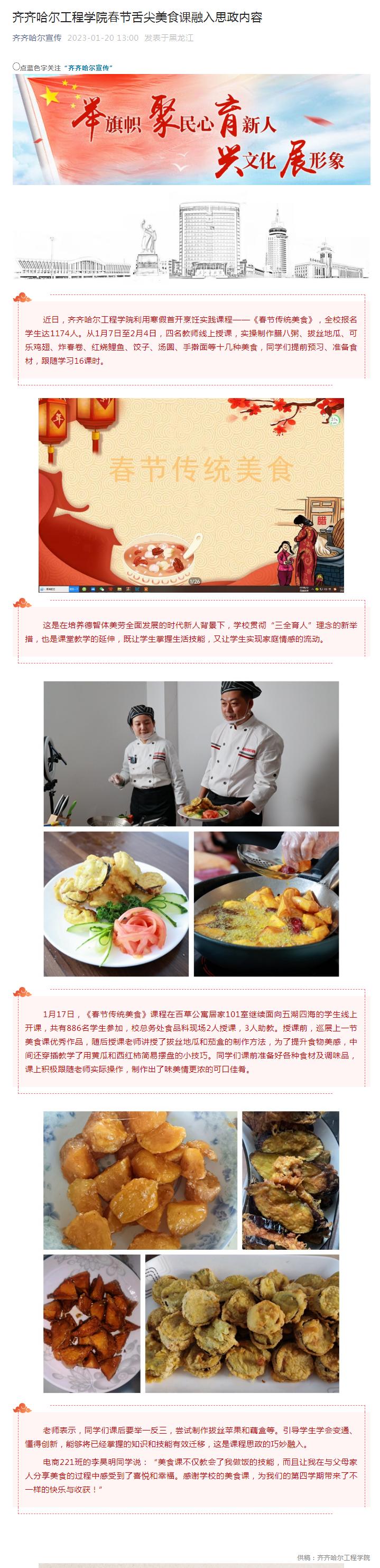 齐齐哈尔宣传:齐齐哈尔工程学院春节舌尖美食课融入思政内容