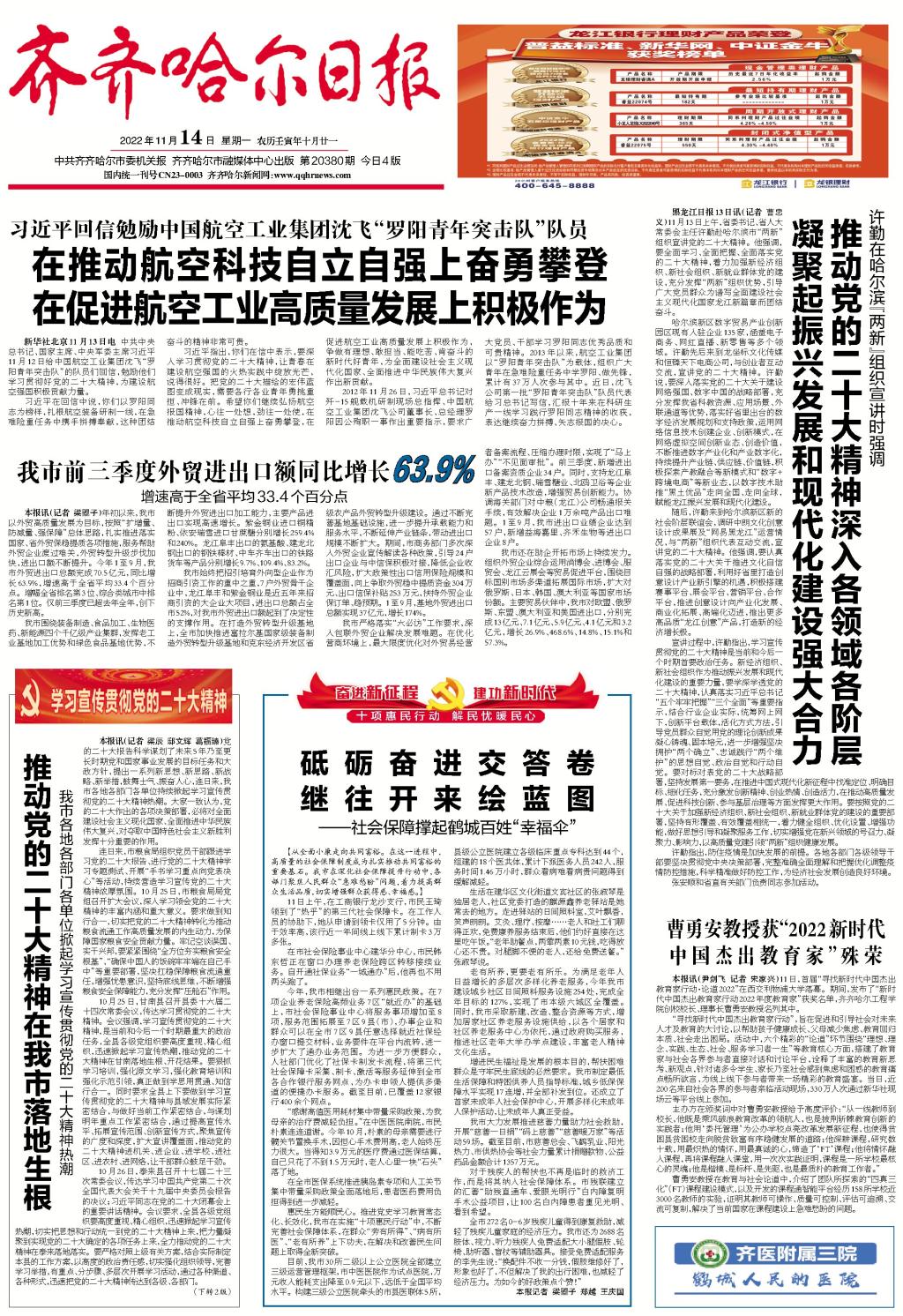 齐齐哈尔日报:曹勇安教授获“2022新时代中国杰出教育家”殊荣