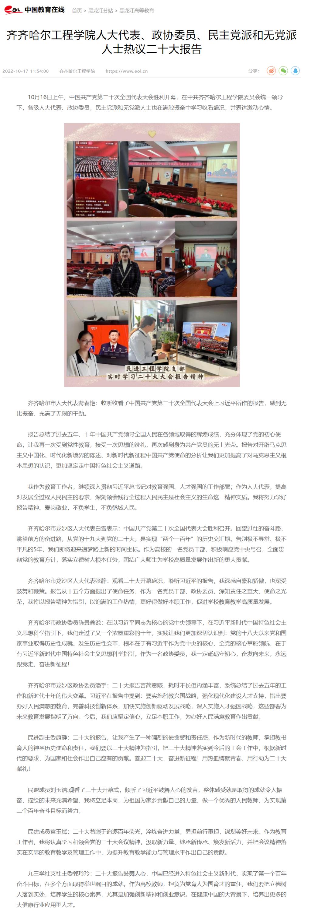 中国教育在线:齐齐哈尔工程学院人大代表、政协委员、民主党派和无党派人士热议二十大报告
