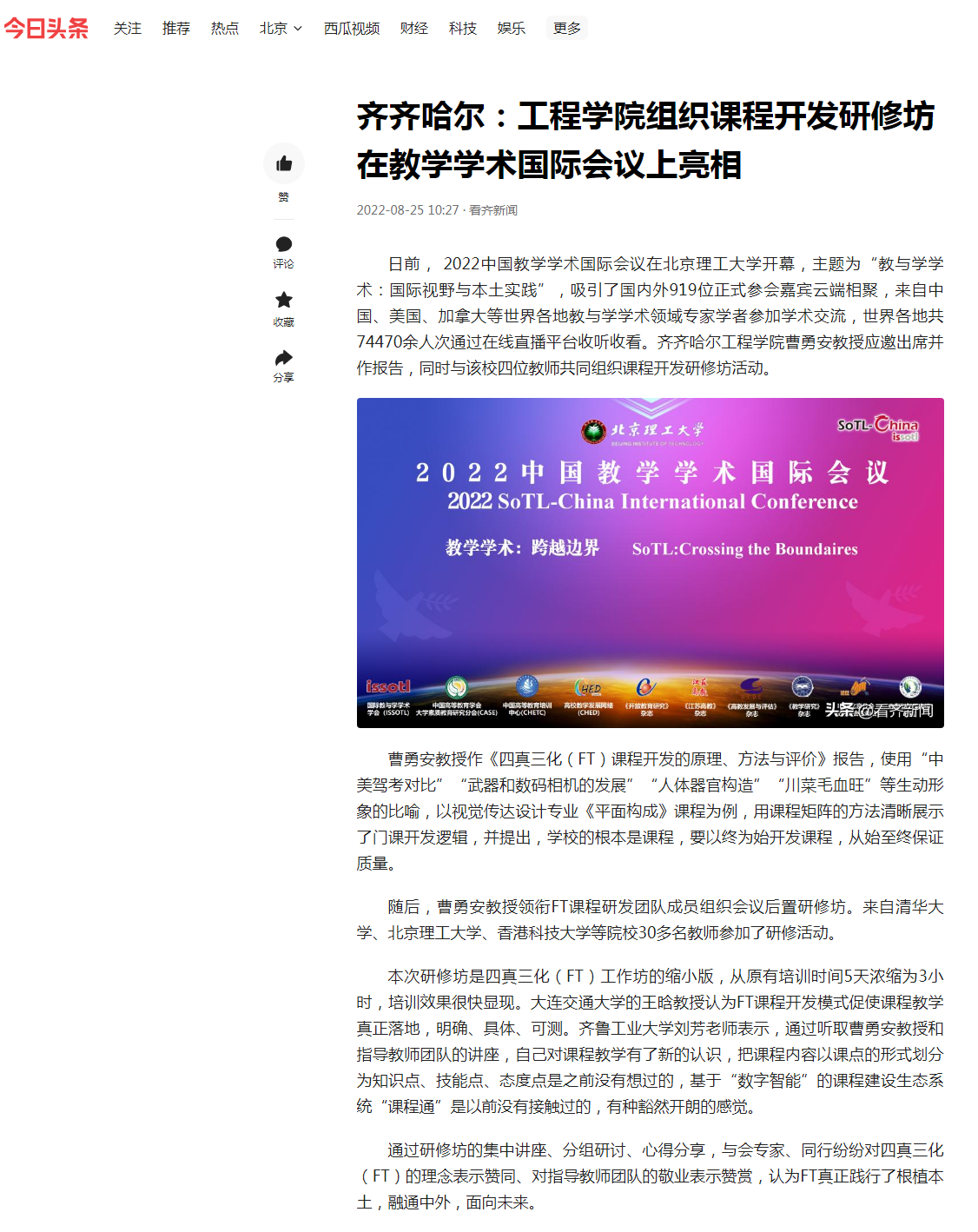 今日头条:齐齐哈尔:工程学院组织课程开发研修坊在教学学术国际会议上亮相