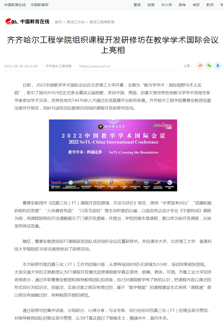 中国教育在线:齐齐哈尔工程学院组织课程开发研修坊在教学学术国际会议上亮相