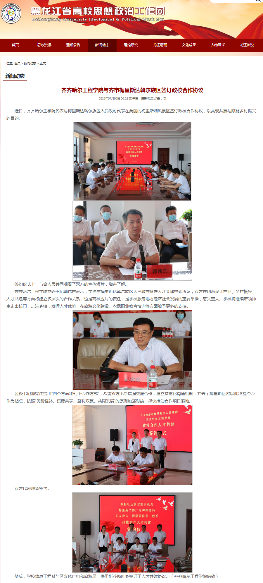 黑龙江省高校思想政治工作网:齐齐哈尔工程学院与齐市梅里斯达斡尔族区签订政校合作协议