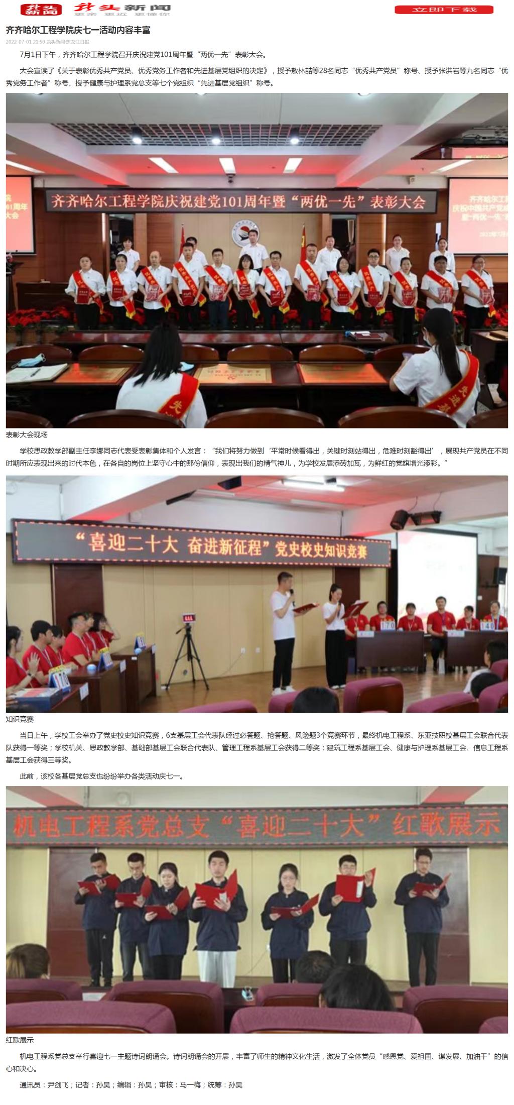 龙头新闻:齐齐哈尔工程学院庆七一活动内容丰富