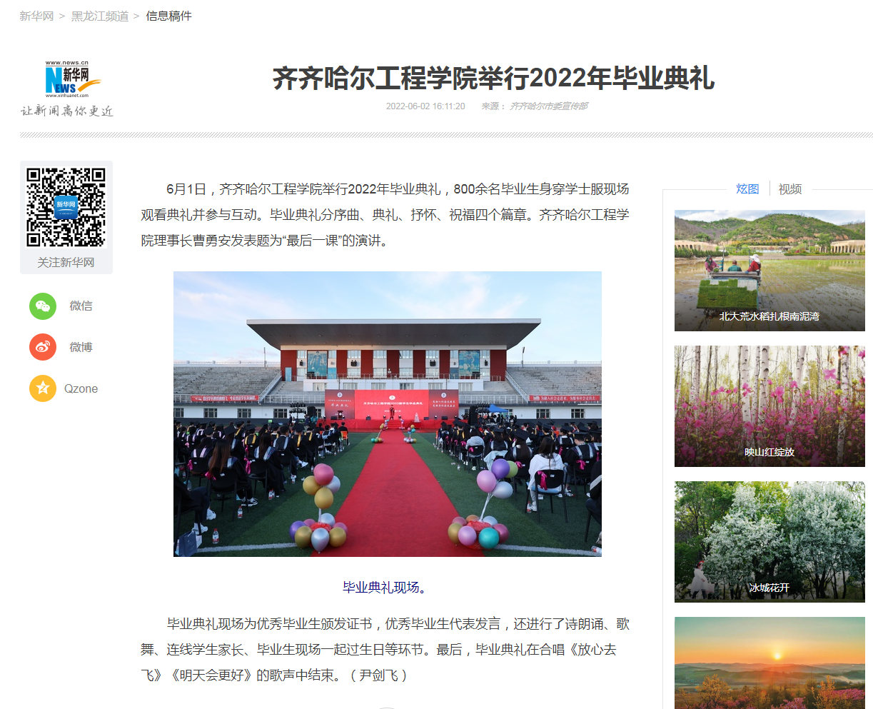 新华网:齐齐哈尔工程学院举行2022年毕业典礼