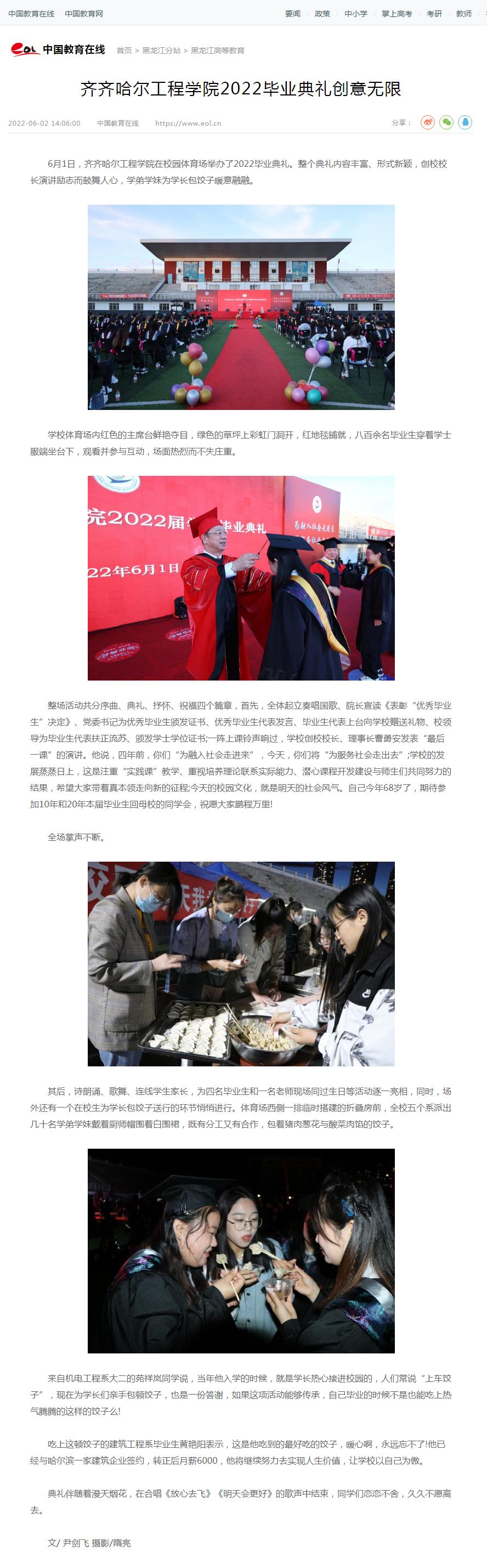 中国教育在线:齐齐哈尔工程学院2022毕业典礼创意无限