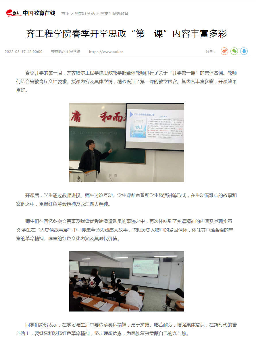 中国教育在线:齐工程学院春季开学思政“第一课”内容丰富多彩