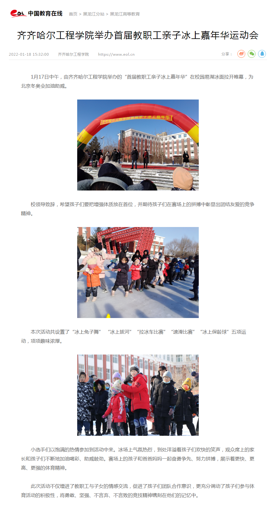 中国教育在线:齐齐哈尔工程学院举办首届教职工亲子冰上嘉年华运动会
