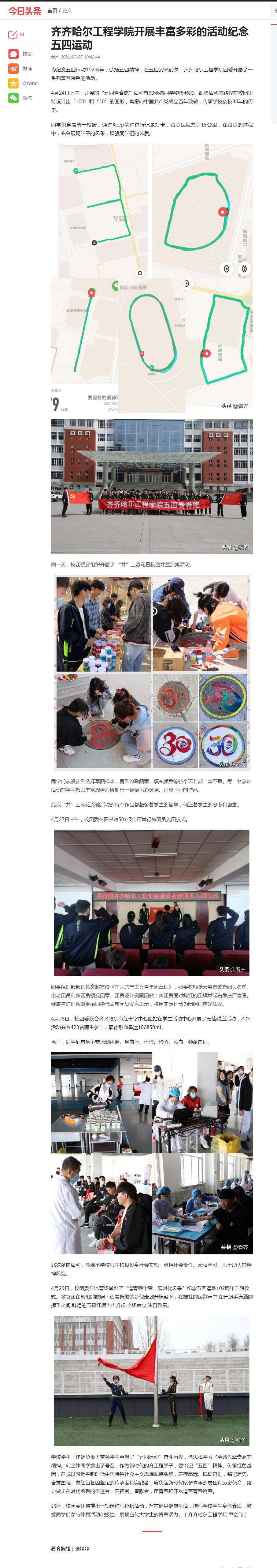 今日头条:齐齐哈尔工程学院开展丰富多彩的活动纪念五四运动
