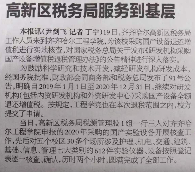 齐齐哈尔日报:高新区税务局服务到基层
