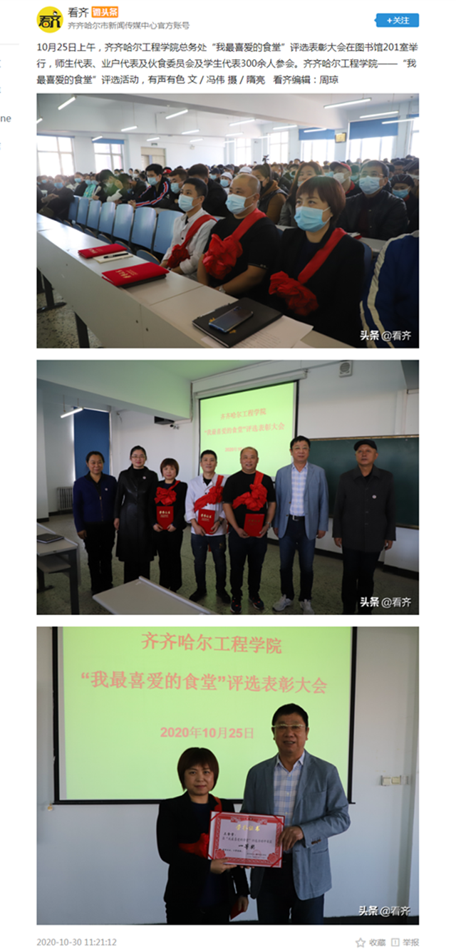 看齐微头条报道学校“我最喜爱的食堂”评选活动