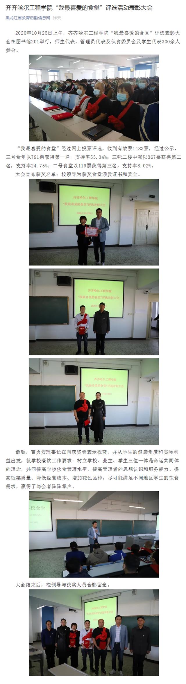 黑龙江省教育后勤信息网:齐齐哈尔工程学院召开“我最喜爱的食堂”评选活动表彰大会