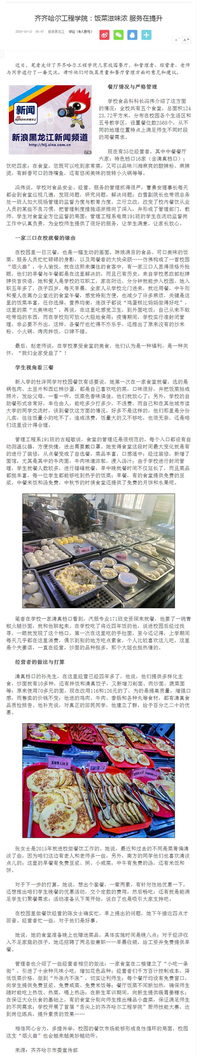 新浪黑龙江:齐齐哈尔工程学院:饭菜滋味浓 服务在提升