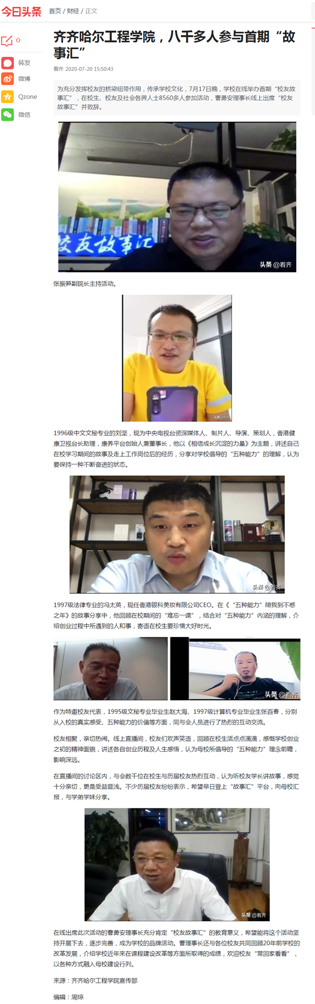 今日头条:齐齐哈尔工程学院,八千多人参与首期“故事汇”