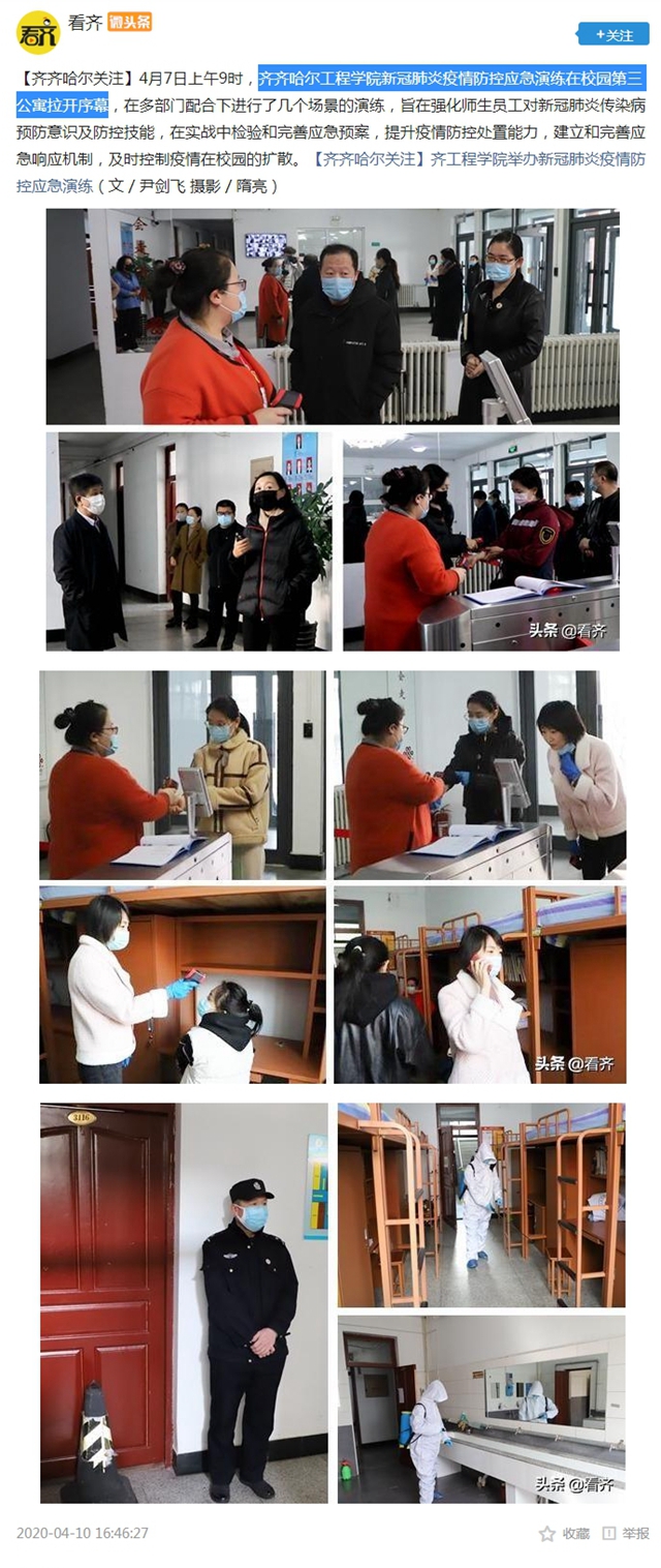 看齐:齐齐哈尔工程学院新冠肺炎疫情防控应急演练在校园第三公寓拉开序幕