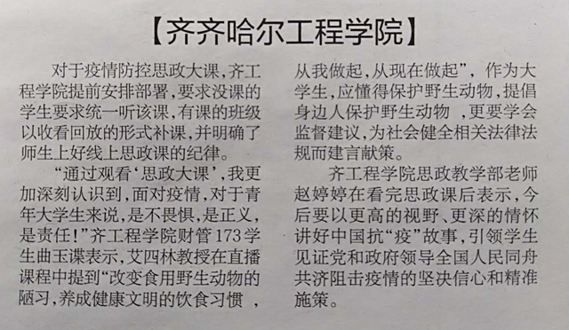 鹤城晚报:齐工程学院师生同上疫情防控思政大课留感言