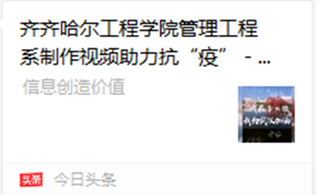 今日头条:齐齐哈尔工程学院管理工程系制作视频助力抗“疫”