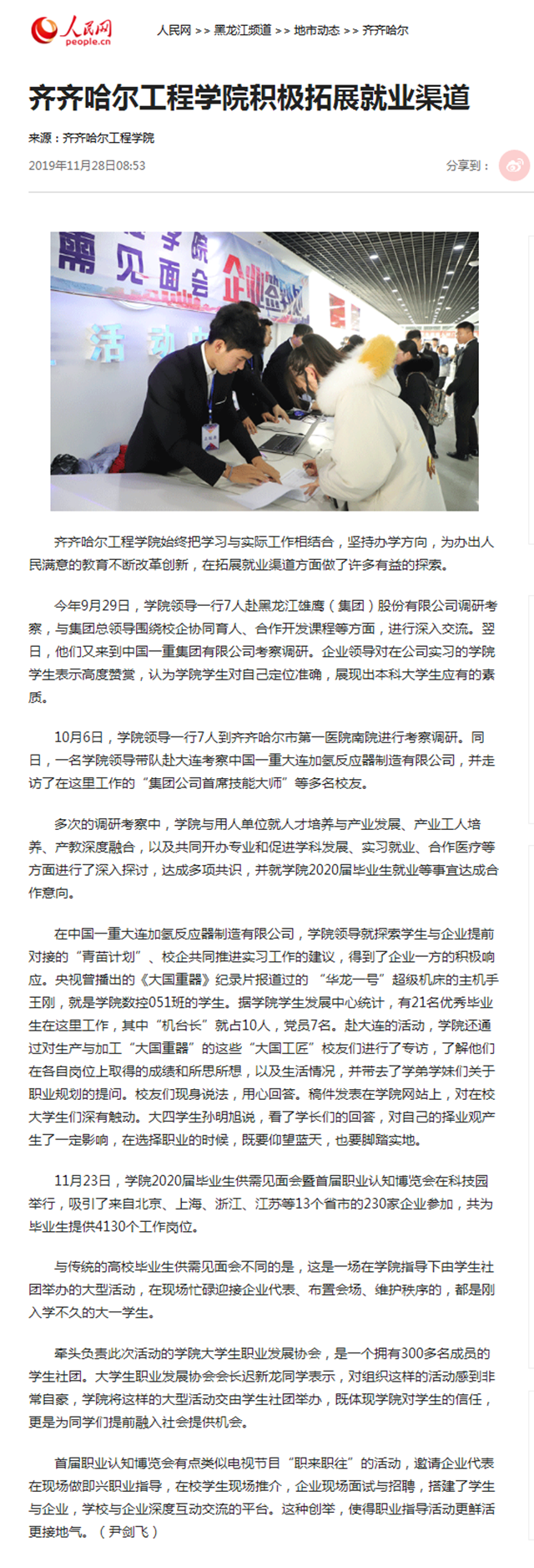 人民网:齐齐哈尔工程学院积极拓展就业渠道