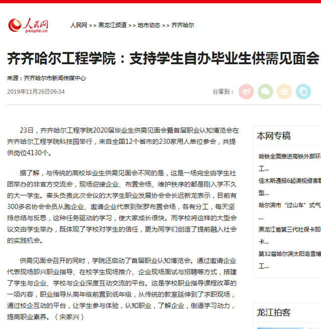 人民网:齐齐哈尔工程学院支持学生自办毕业生供需见面会