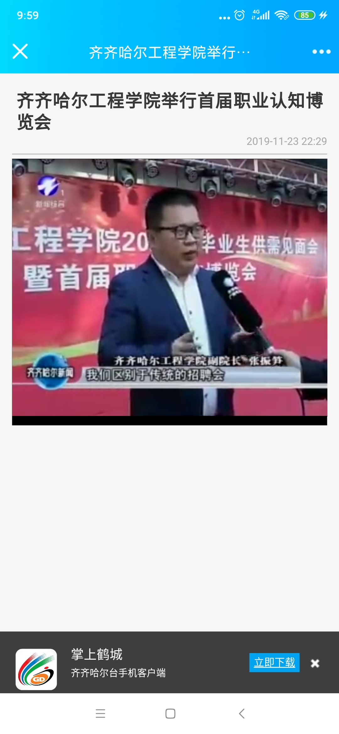扫描二维码在线观看《齐齐哈尔工程学院举行首届职业认知博览会》视频
