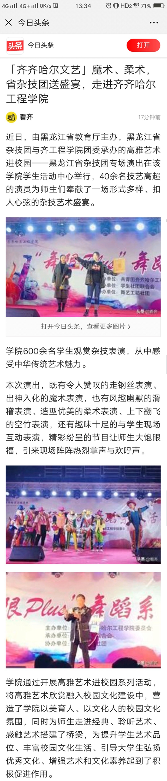 今日头条《齐齐哈尔文艺》:魔术、柔术,省杂技团送盛宴,走进齐齐哈尔工程学院