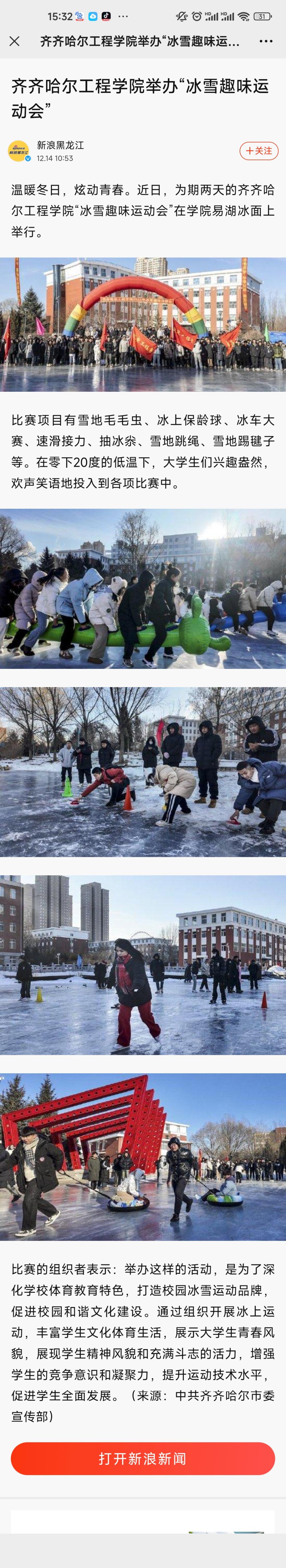 新浪黑龙江:齐齐哈尔工程学院举办“冰雪趣味运动会”