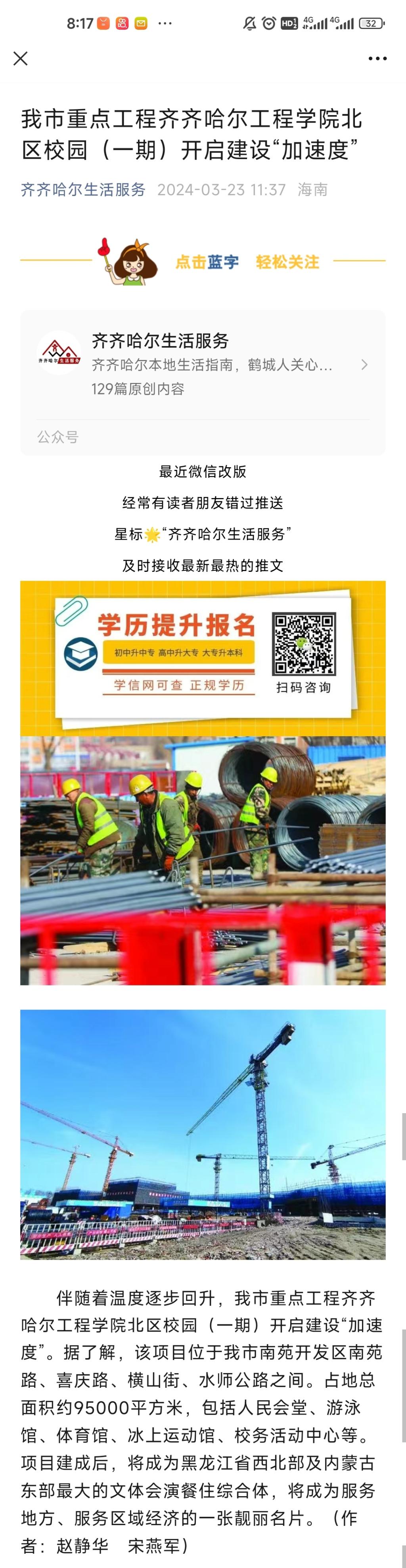 《齐齐哈尔生活服务》报道《我市重点工程齐齐哈尔工程学院北区校园(一期)开启建设“加速度”》