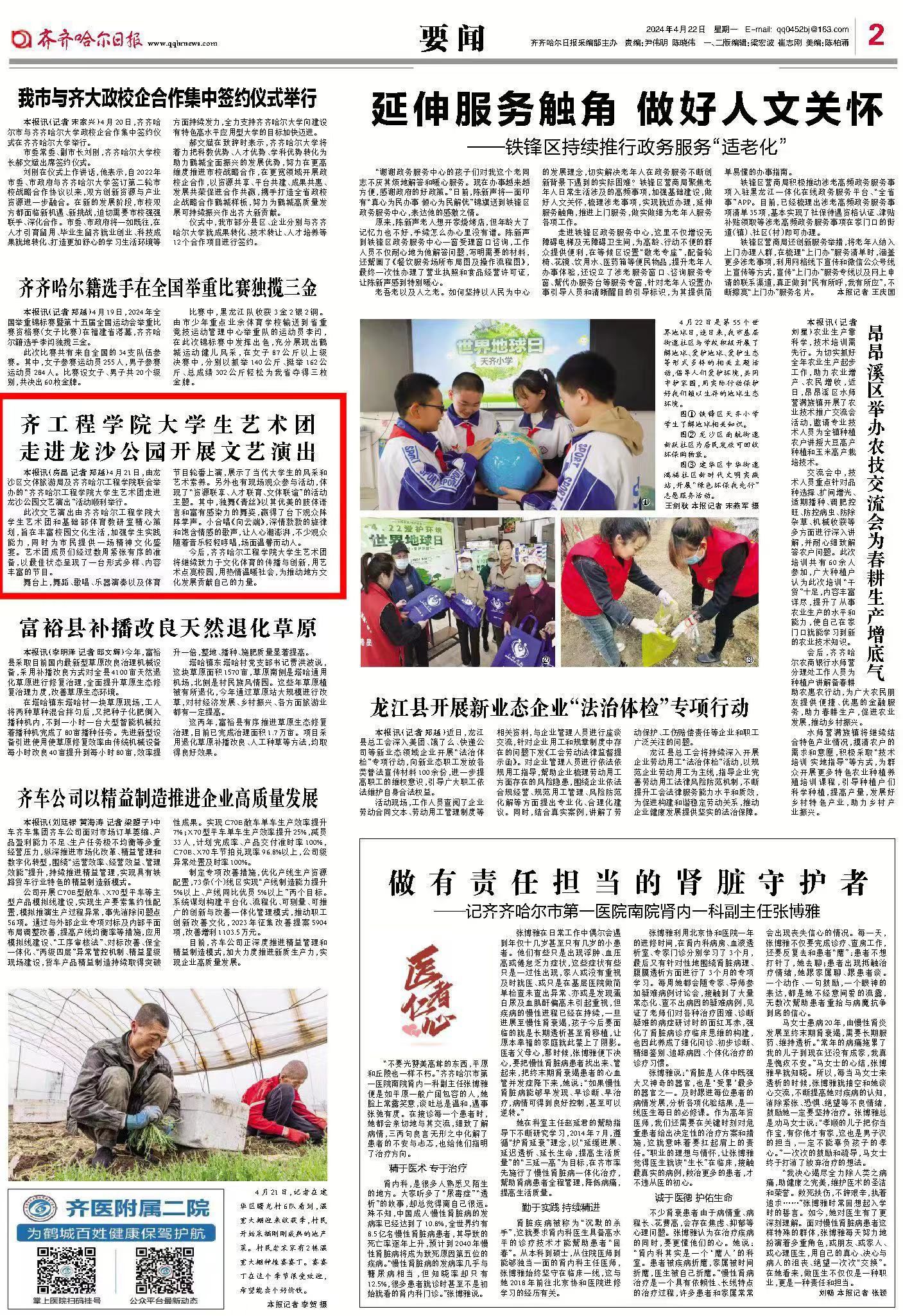 《齐齐哈尔日报》报道齐工程学院大学生艺术团走进龙沙公园开展文艺演出