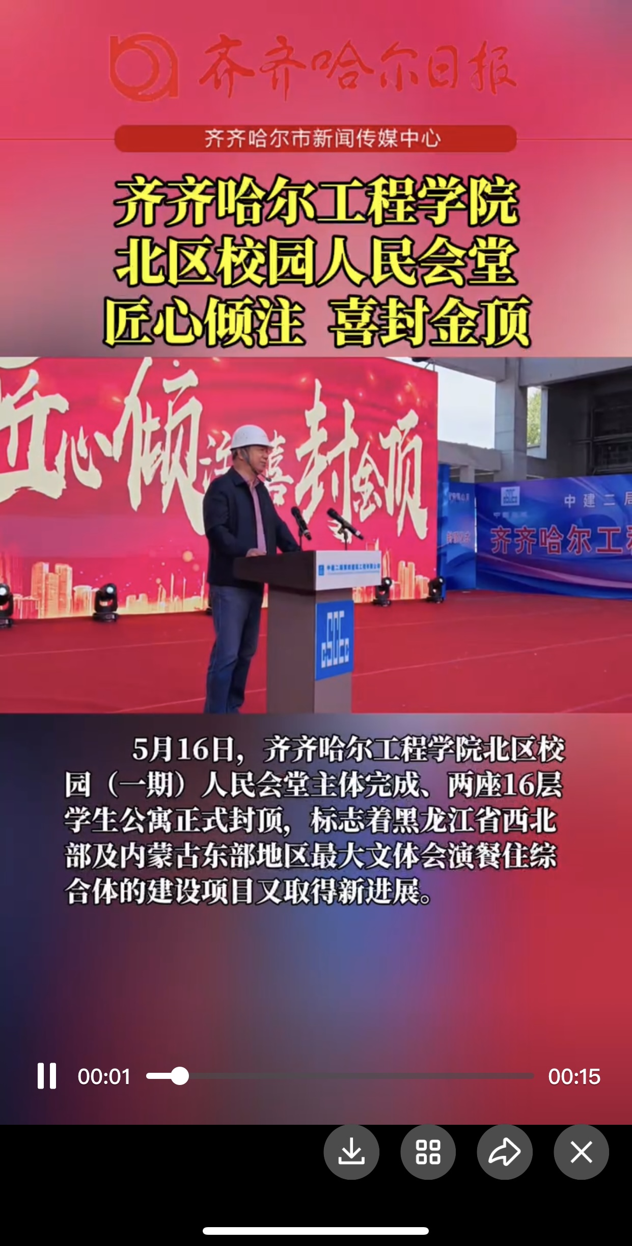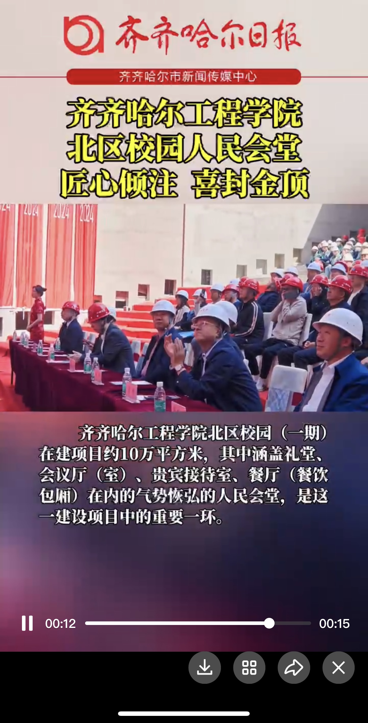 《齐齐哈尔传媒中心》报道齐齐哈尔工程学院北区校园人民会堂匠心倾注 喜封金顶
