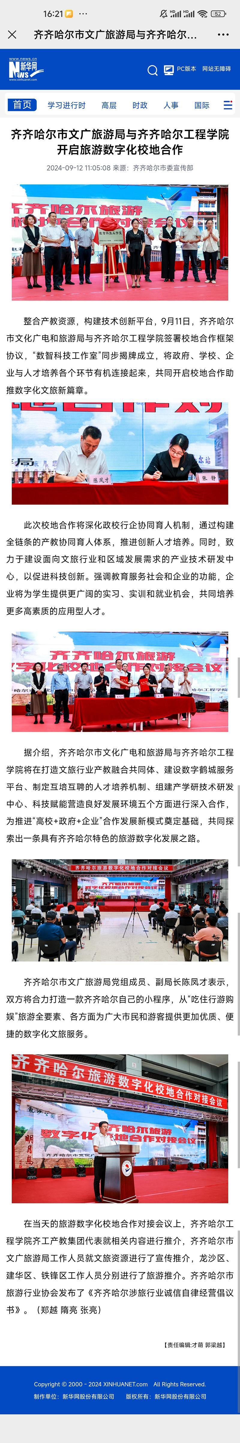《新华网》齐齐哈尔市文广旅游局与齐齐哈尔工程学院开启旅游数字化校地合作