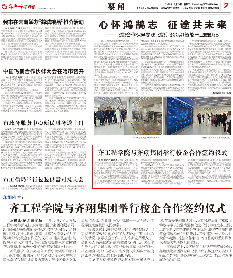 《齐齐哈尔日报》齐工程学院与齐翔集团举行校企合作签约仪式