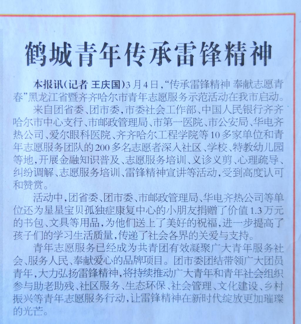 《齐齐哈尔日报》鹤城青年传承雷锋精神
