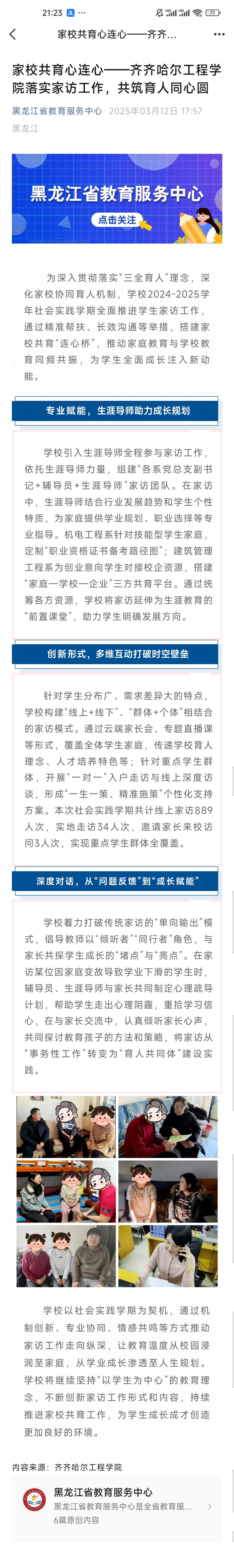 《黑龙江省教育服务中心》家校共育心连心——齐齐哈尔工程学院落实​家访工作,共筑育人同心圆