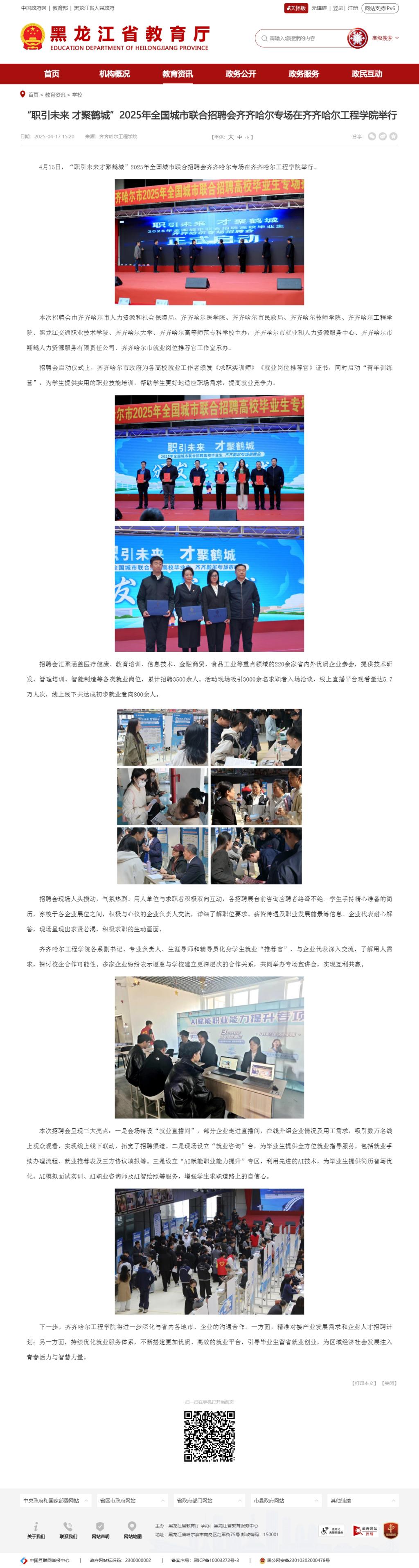 《黑龙江省教育厅》“职引未来 才聚鹤城”2025年全国城市联合招聘会齐齐哈尔专场在齐齐哈尔工程学院举行