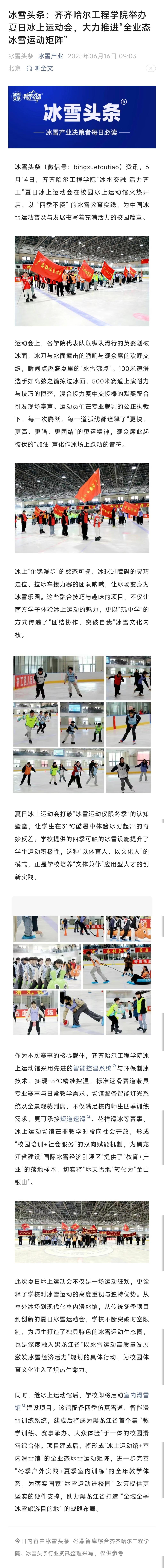 《冰雪产业》冰雪头条:齐齐哈尔工程学院举办夏日冰上运动会,大力推进“全业态冰雪运动矩阵”
