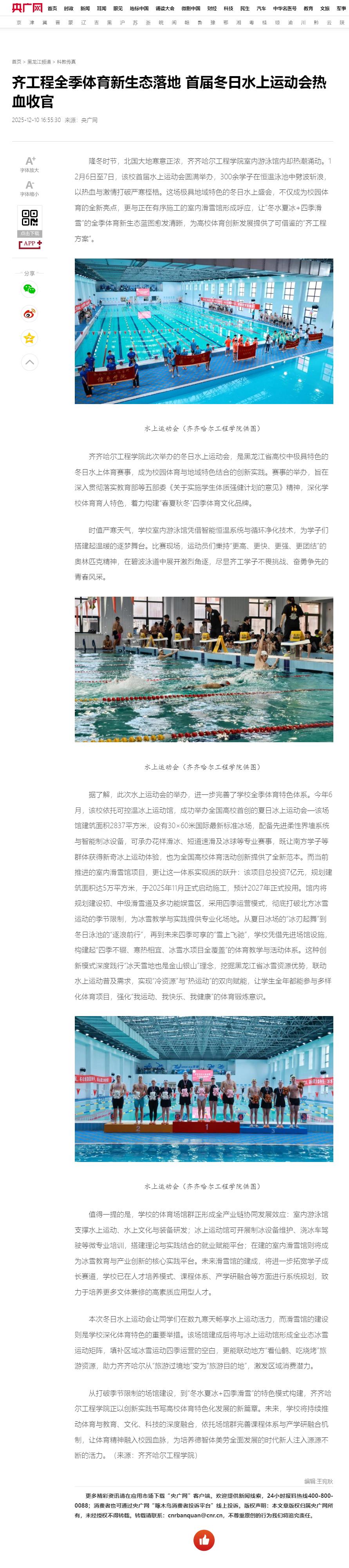 《央广网》齐工程全季体育新生态落地 首届冬日水上运动会热血收官