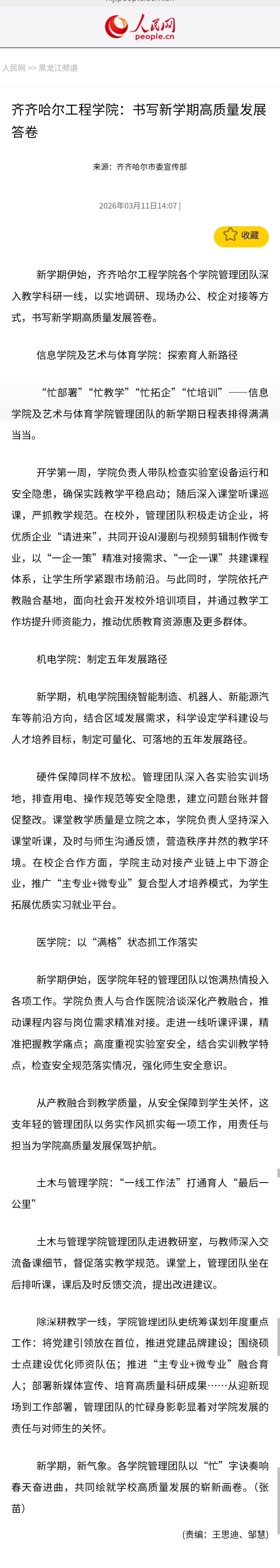 《人民网》齐齐哈尔工程学院:书写新学期高质量发展答卷